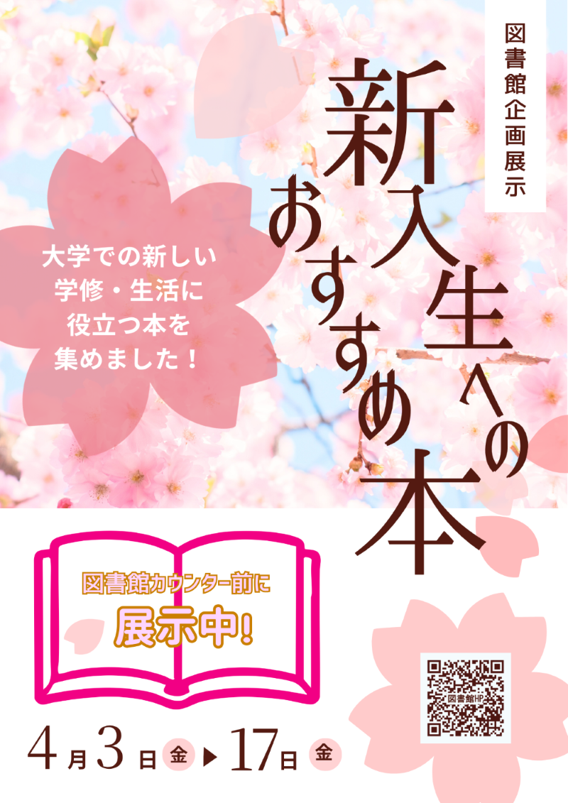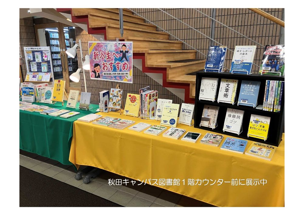 秋田キャンパス図書館では、カウンター前にて企画展示『新入生におすすめの本』を開催中です🔥